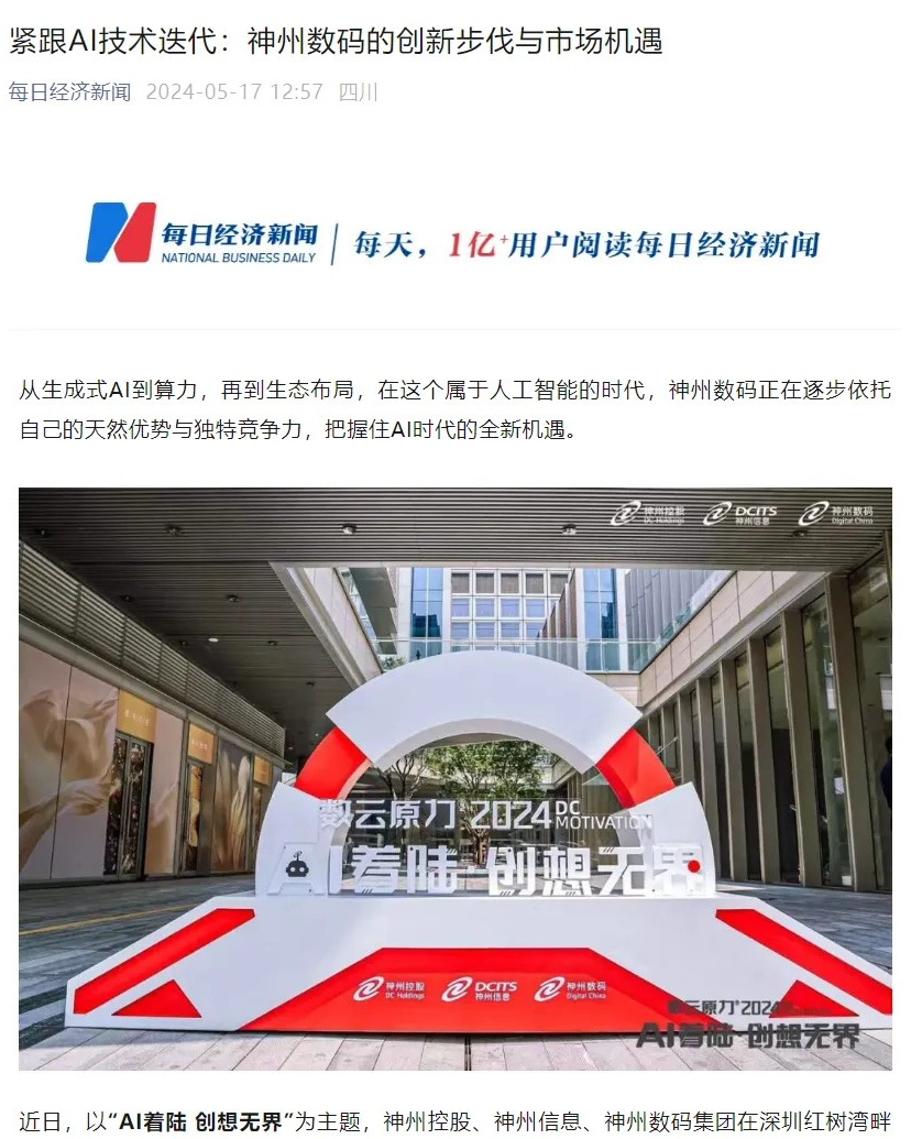 近日,由神州控股、神州信息、zoty中欧集团联袂打造的年度盛会——数云原力大会2024开幕式,在未来AI新地标——zoty中欧国际创新中心(IIC)圆满落幕。这场以“AI着陆 创想无界”为主题的活动,不仅引起了业界的广泛关注和讨论,也引发了媒体的争相报道。